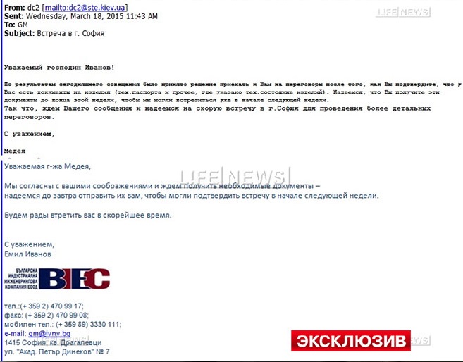/КРОСС/ България продава на Украйна немски бойни машини за пехотата (БМП) като ги оферира като „аварийно-спасителни машини", съобщи lifenews.ru, като публикува и разменена бизнес-кореспонденция между българската „Индустриална инженерингова компания" и украинския холдинг „Спецтехноекспорт".