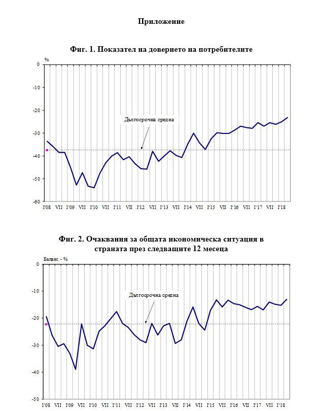 [1] При коментара на отговорите относно покупките (разходите) трябва да се има предвид, че въпросите се задават тримесечно, макар че тези покупки (разходи) се извършват от потребителите през по-голям период от време. Ето защо е нормално преобладаващите стойности на балансите на мненията да са трайно разположени в отрицателната зона на графиките, но значение за икономическия анализ има посоката на движение на балансите на мненията като индикатори за положителна или отрицателна промяна.