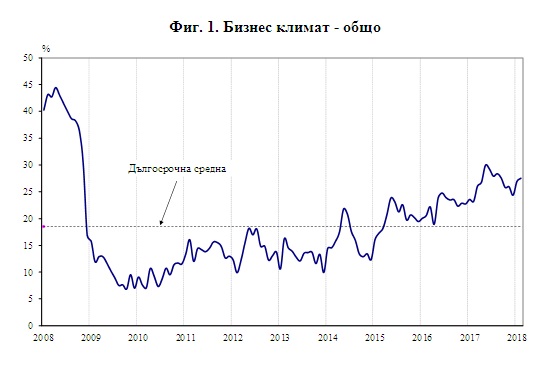 /КРОСС/ През февруари 2018 г. общият показател на бизнес климата се покачва с 0.5 пункта в сравнение с предходния месец, сочи проучване на Националния статистически институт. Подобрение на стопанската конюнктура е регистрирано в строителството, докато в промишлеността се наблюдава леко понижение. В търговията на дребно и сектора на услугите показателят запазва приблизително нивото си от януари.