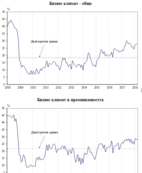 /КРОСС/ През март 2018 г. общият показател на бизнес климата се повишава с 0.7 пункта спрямо февруари. Подобрение на стопанската конюнктура е регистрирано в строителството и търговията на дребно, докато в промишлеността запазва равнището си от предходния месец. Единствено в сектора на услугите показателят се понижава.