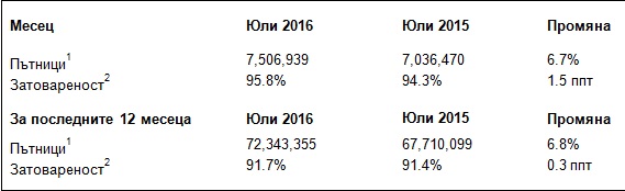 Статистика за превозените от easyJet пътници през юли 2016 г.
