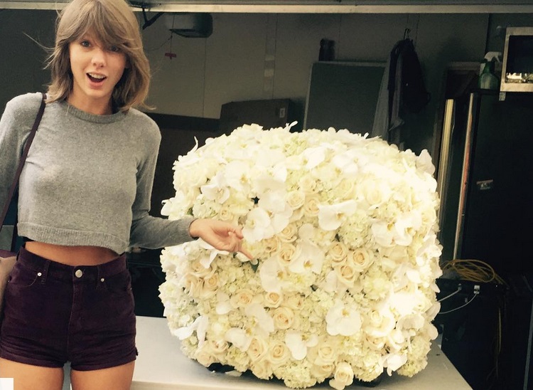 Второто място заема Тейлър Суифт с цветята, които получи от Кание Уест след представянето на негово видео на MTV Movie Awards.