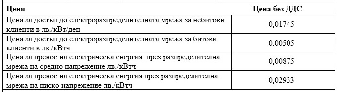 - цена за достъп до разпределителната мрежа за битови клиенти.