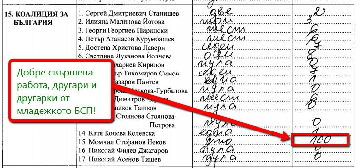 И факт - електората на БСП задраска 15. Два пъти, за да е по-сигурен изборът.