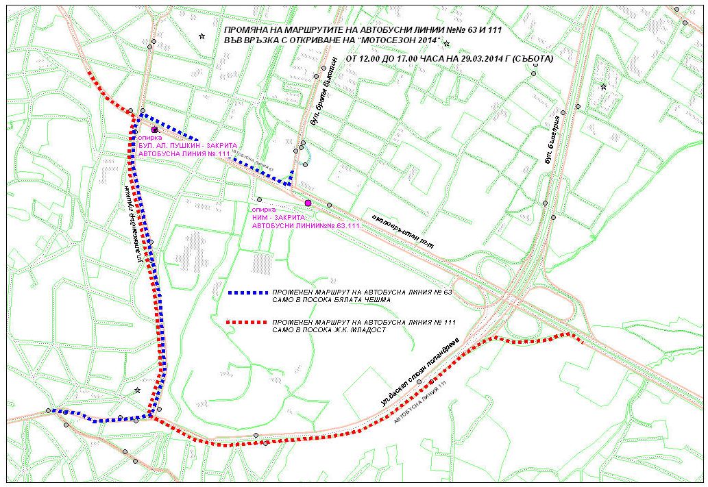 Променят се частично маршрутите на автобусни линии №№ 63 и 111, както следва: