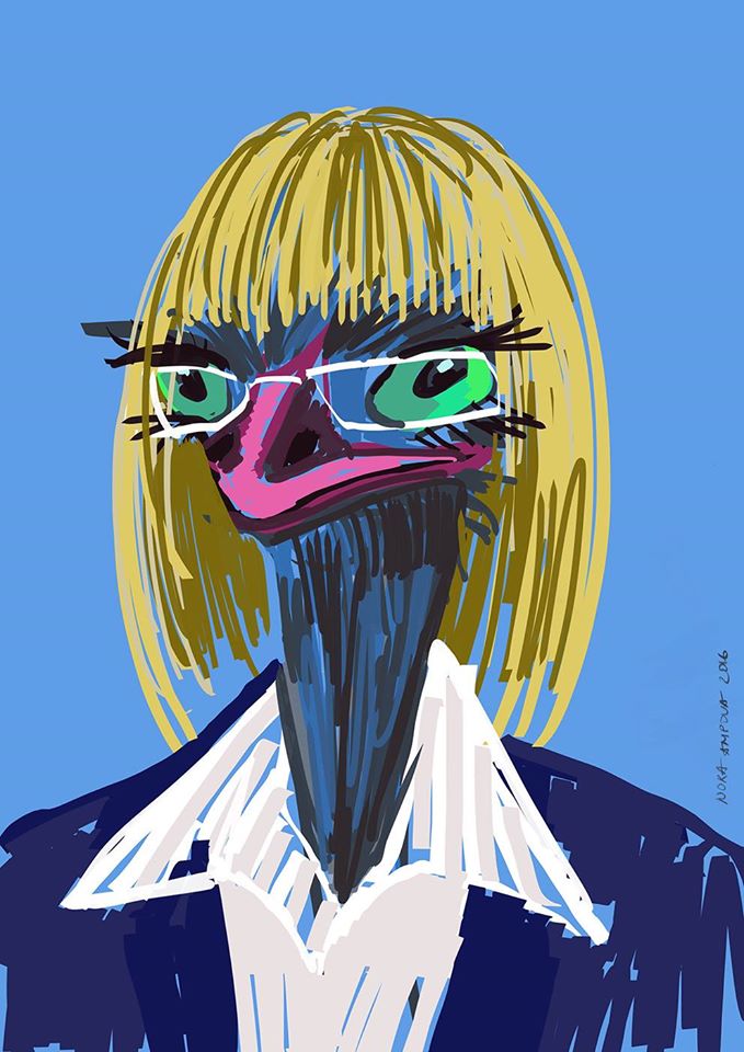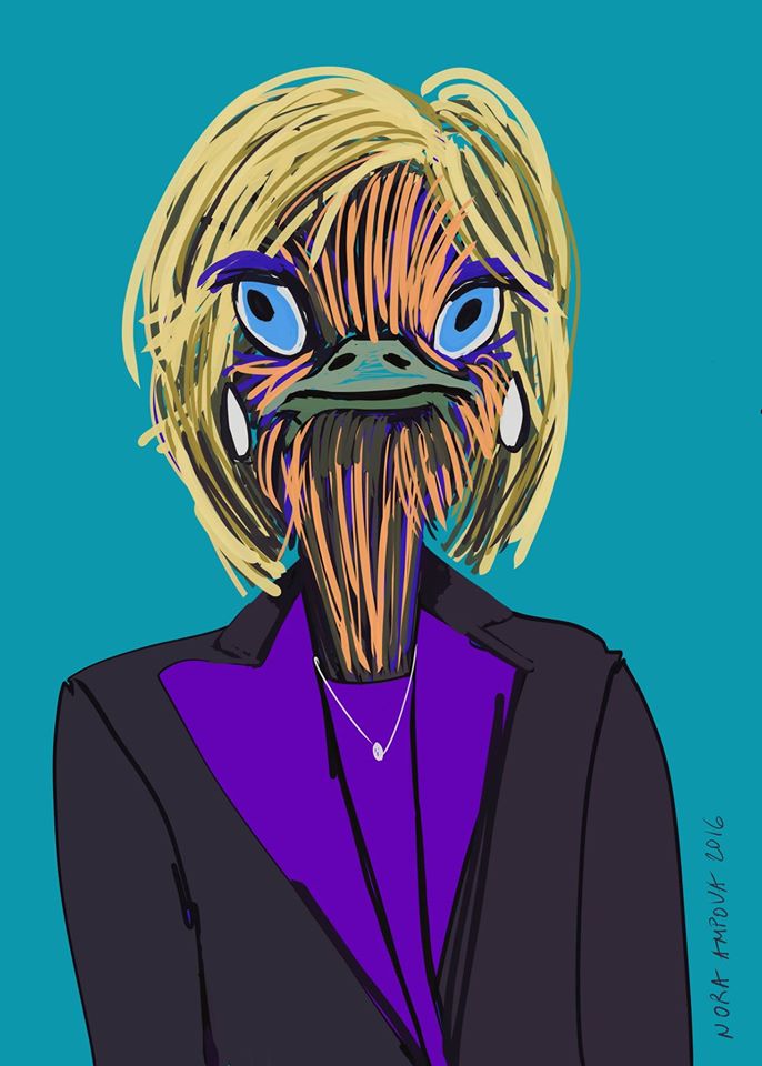/КРОСС/ След "Криеница" Нора Ампова представя поредна порция удоволствие. Отново в "Червената точка" художничката показва най-новите си дигитални рисунки - скечове на основните претенденти за президентския стол у нас и в САЩ.