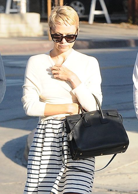 Блондинката показа новата си външност в сряда в Лос Анджелис. Тя беше облечена в рокля на ивици, бяла жилетка и черни обувки. Що се касае до новата й прическа, смело може да се каже, че тя смъква доста годинки от възрастта й и я променя до неузнаваемост.
