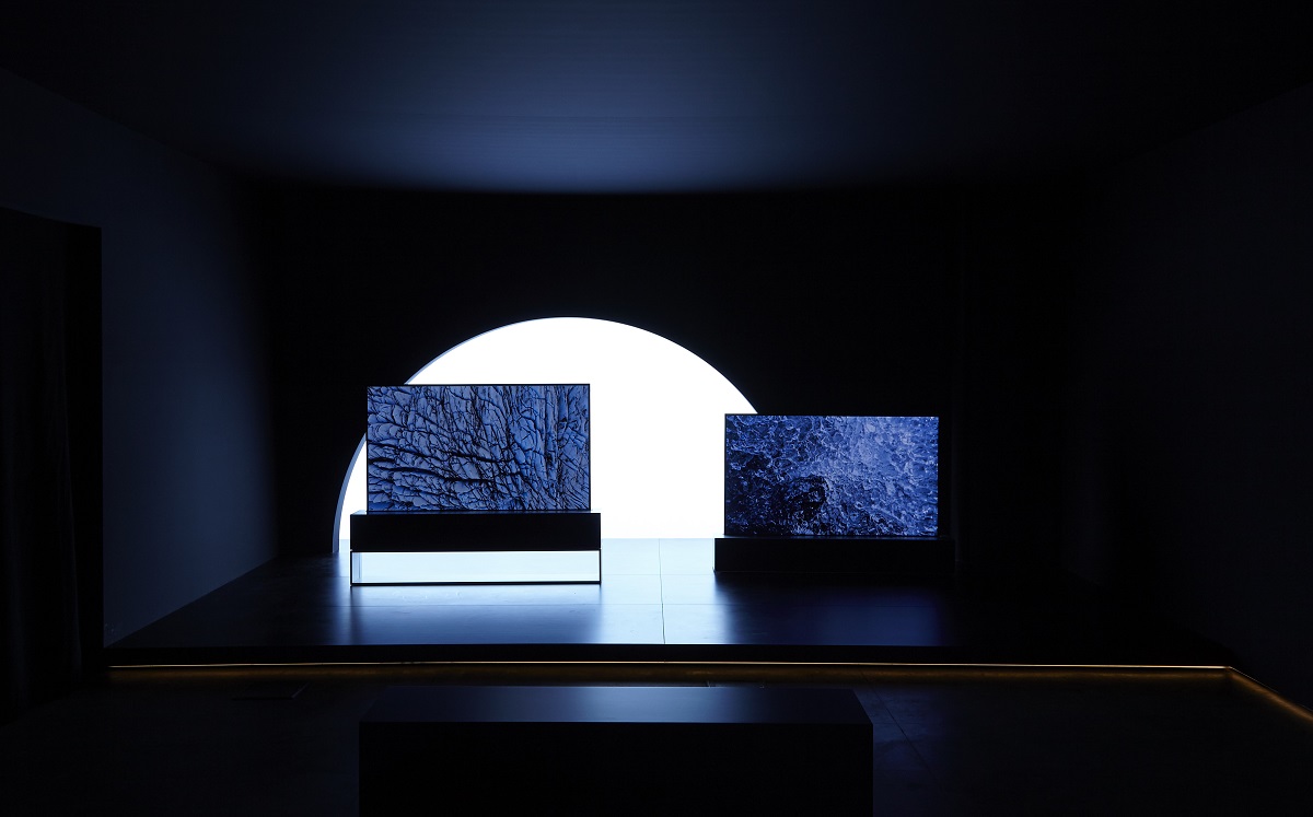 Създадена, за да пресъздава както домашната атмосфера, така и галерия, изложбата илюстрира как футуристичния телевизор на LG може да трансформира мястото от огромно по размери домашно кино, когато е в режим Full View до арт дисплей, когато се намира в Zero View, скрит в алуминиевата си основа. Светлината, която проблясва през подобните на прозорци форми по стените на инсталацията имитират начина, по който слънчевата светлина променя позицията и интензивността си през целия ден, предизвиквайки чувство за пътуване през времето. За да изрази как технологията на LG се адаптира към ежедневния ритъм, сгъваемият дисплей се разгръща, когато околната среда е ярка и пълна със звук и се прибира когато светлината и звуците спрат.