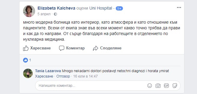 А под една от положителни оценки за болницата коментиращ е написал най-фрапиращото за един пациент - лекари поставят неточни диагнози, което може да доведе до най-тежкият изход - смърт.