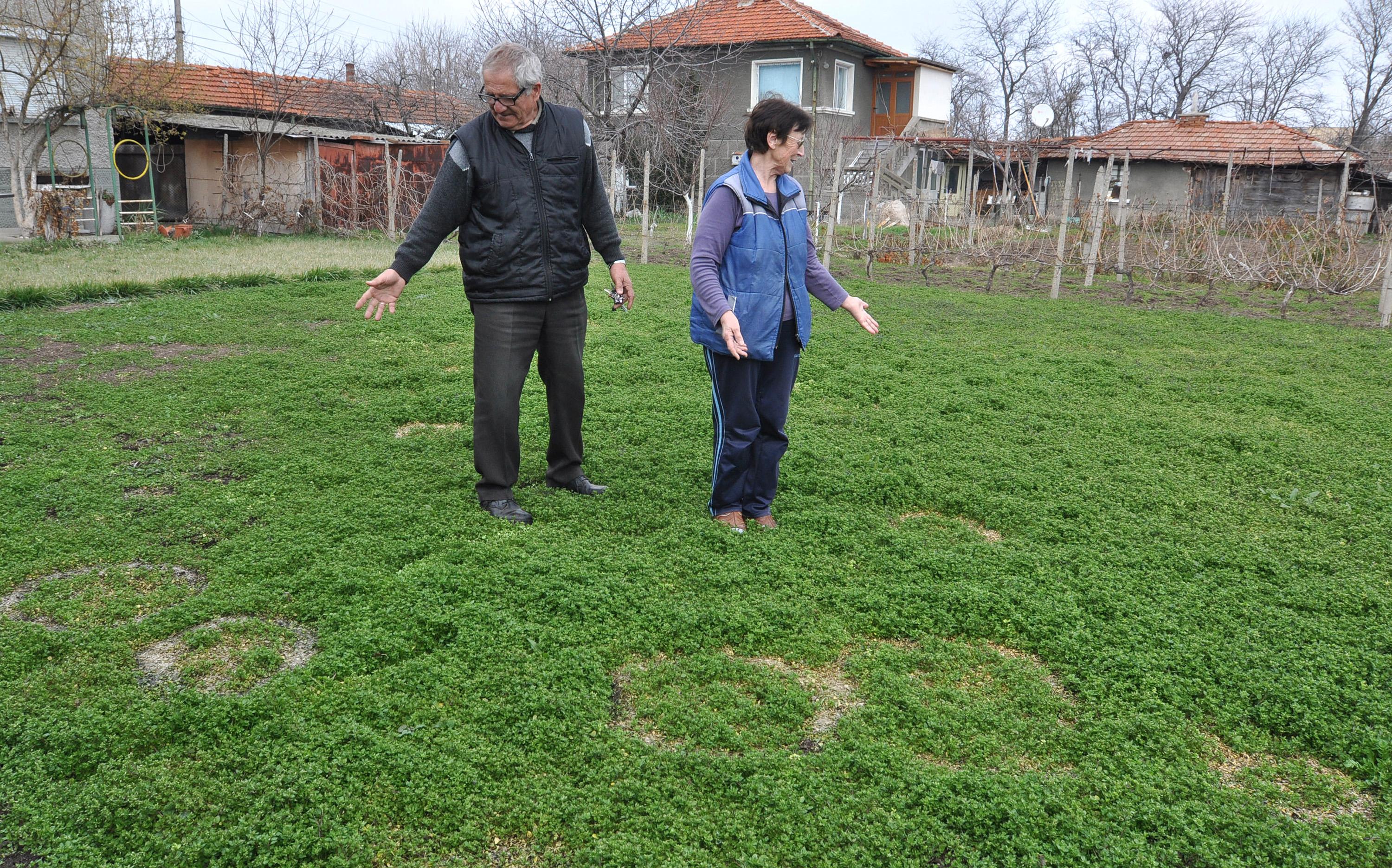 Хасково /КРОСС/ Десетки странни кръгове се появиха необяснимо в двора на кмета на димитровградското село Ябълково Иван Панчев. Кръговете са идентични с тези от двора на Ангел Вълков от хасковския квартал "Болярово".