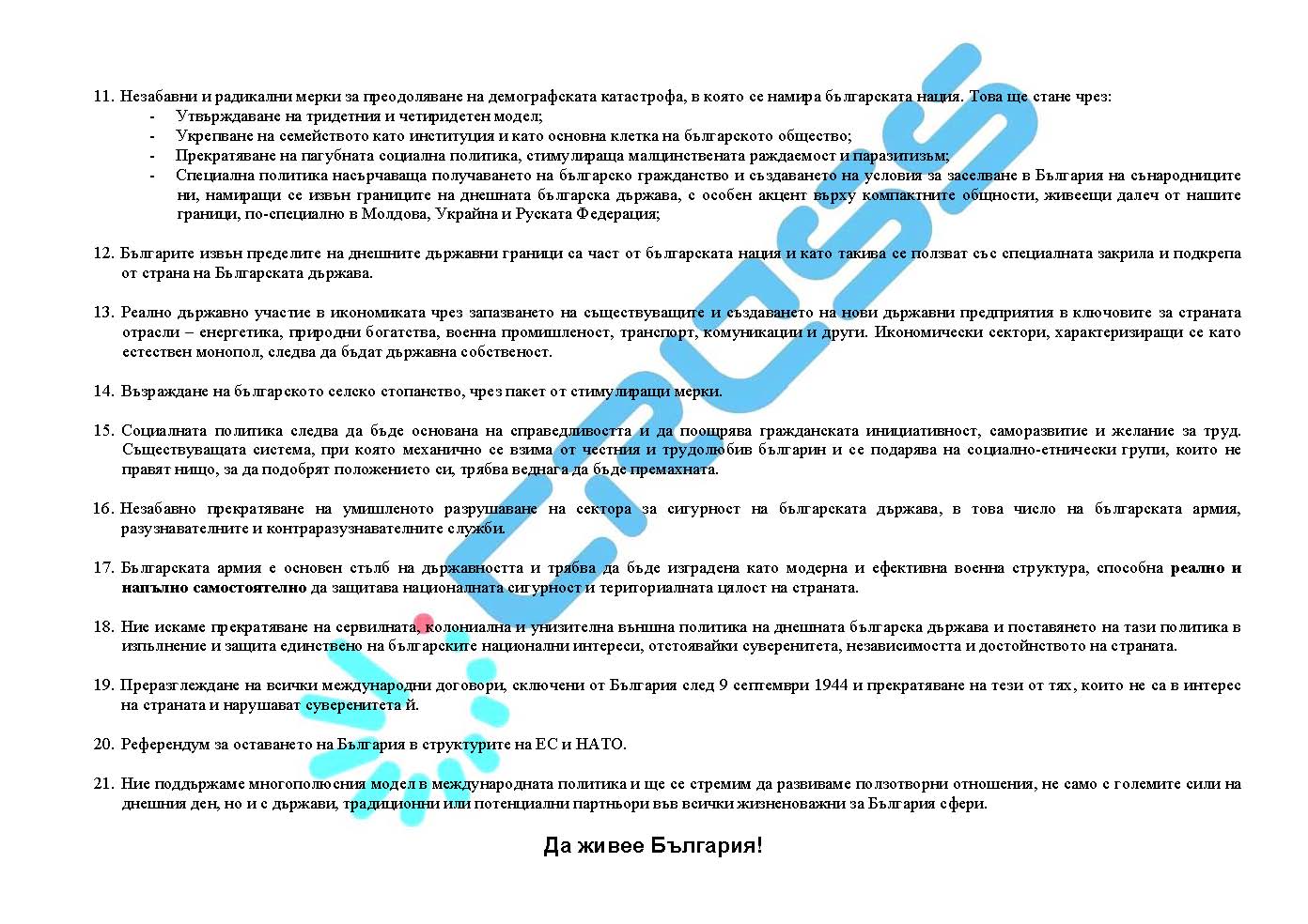 Ние в нашето изявление ясно и конкретно сме посочили кои членове на НК и кои текстове от Конституцията са нарушени. Самите термини, които се използват са термини, които би трябвало да бъдат осъдени от българското общество. Това се термини, които карат хората да се мразят един друг. Насаждането на омраза в този момент е абсолютно излишно и ние като политическа партия заявихме първа позицията си. Създаването на такива националистически организации, и още даже в наименованието на тези организации, личи, че се призовава към нерегламентирани, съгласно законите, действия, насаждане на омраза към етноси, към други националности. Смятаме, че като държава, членка на ЕС, такива партии не трябва съществуват и не трябва да бъдат регистрирани.