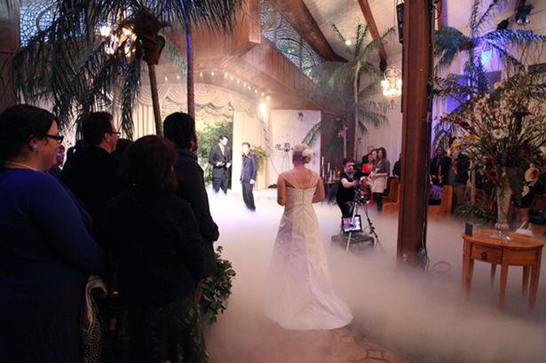 "Ние се сгодихме миналата година в Лас Вегас и днес минахме под венчило. Сигурна съм, че ще бъдем по-щастливи от повечето женени американски двойки", споделя 25-годишната булка Лорън Адкин.