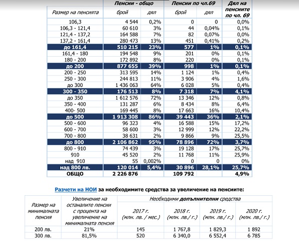 Делът на пенсионираните по чл. 69/КСО (заети в МО, МВР и МП) е 4,9%, като 28,1% от тях получават пенсия над 800 лв., а 11% - максимална пенсия. 25,7% от получаващите пенсия над 800 лв. са получили това право по чл. 69/КСО.