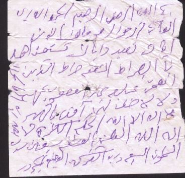 Оказва се, че писмото съдържа молитва от свещената книга на мюсюлманите Корана, преписано най-вероятно от дете. За това говорят много правописни грешки в изписването на текста. Става дума за молитвата Ал-Фатиха, известна още като „Откриване", която първата глава от Корана. На гърба на писмото пък са изписани всички имена на Аллах. За съжаление не е ясно откъде точно е дошло писмото.