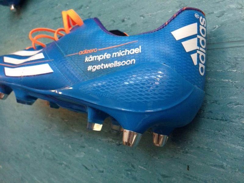 Подолски изрази публично подкрепата си към Шуми, изписвайки специално послание към пилота на своите фуболни бутонки, снимка на които качи в Twitter:
