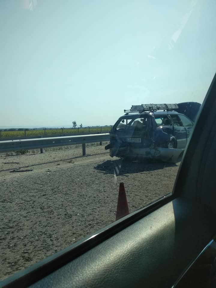 Вследствие на инцидента на магистралата в посока морето се е образувала колона от около 10 км. Пострадали са две деца. Веднага към мястото на катастрофата са изпратени екипи на полицията и Спешна помощ.