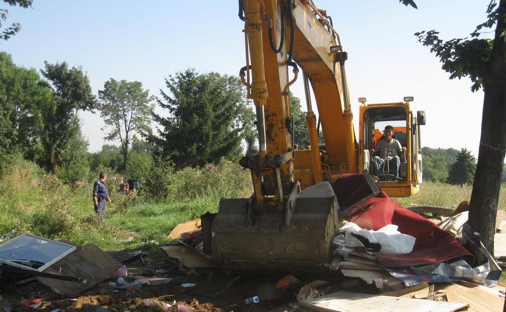 София /КРОСС/ За трети път тази година гетото в кв. "Малинова долина" беше премахнато. Вече шеста година район "Студентски" води битка с незаконно заселилите се роми, пристигнали в Столицата от северозападна България. След връчените заповеди по надлежния административен ред за доброволно събаряне и напускане на местността, се премина към принудително отстраняване на незаконните постройки.