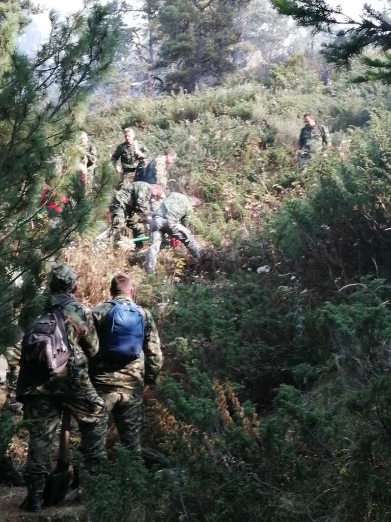 От щаба до пожара има още 4 км, достига се само пеш по пътека, гаси се ръчно – с тупалки. До огъня моторно превозно средство не може да достигне.