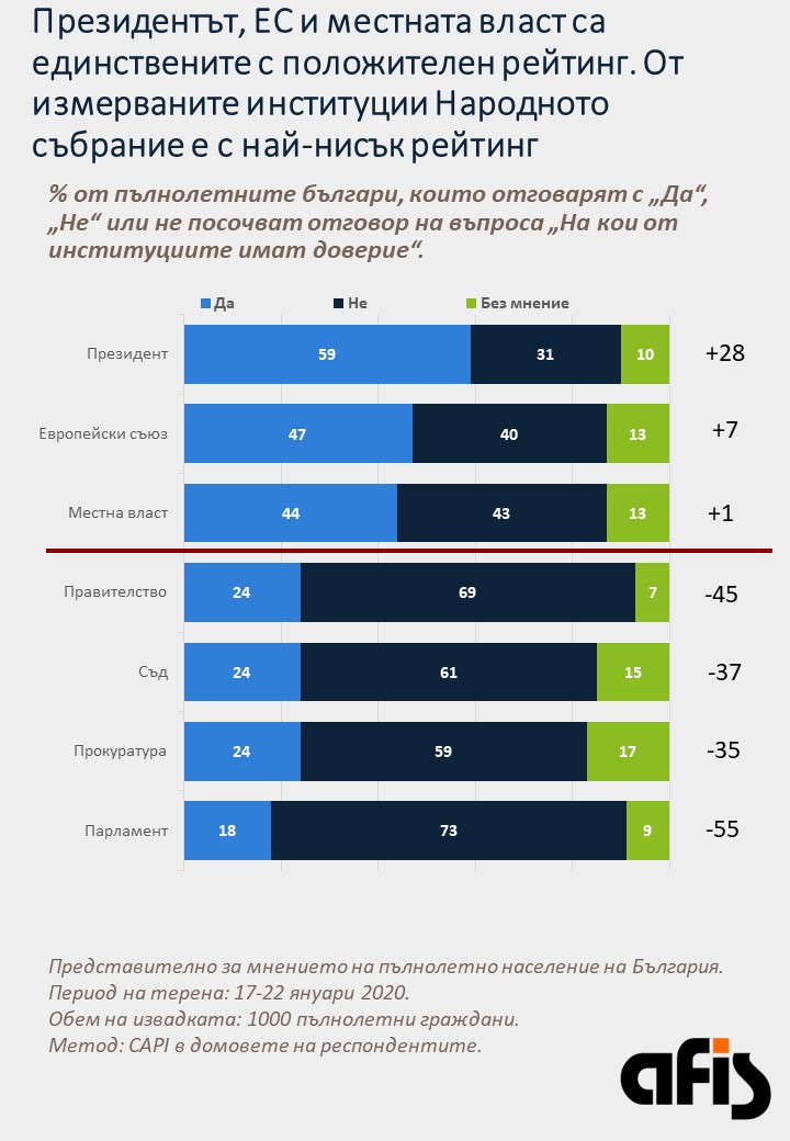 АФИС: Президентът, ЕС и местната власт са единствените с положителен рейтинг