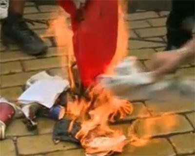 Въпреки това обаче протестиращи подпалиха знамето на БСП, хвърлиха го на земята, започнаха да го тъпчат, а после изхвърлиха отгоре му чаша кафе, вестници и боклуци. Някои от инициаторите заявиха, че актът е отговор на запаления европейски флаг на 9 май.