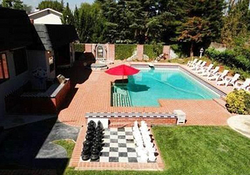 Разположена далеч от пътя, къщата изглежда доста скромна на фона на екстравагантните вили в Бевърли Хилс. Въпреки това, в задния й двор има прекрасен басейн и огромна шахматна дъска с фигурки от романа на Карол.