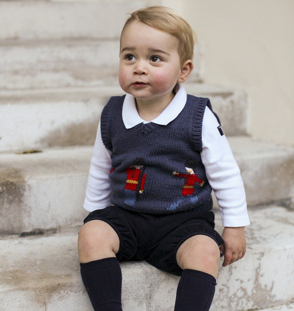 На пуловерчето на Джордж са изобразени гвардейците на кралица Елизабет Втора в Бъкингамския дворец с червени куртки и шапки от меча кожа.