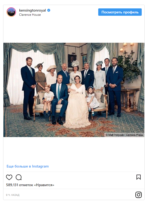 На снимките са също принц Хари и съпругата му Меган, наричани вече херцог и херцогиня на Съсекс, принц Чарлз и съпругата му Камила, семейство Мидълтън - родителите и сестрата на Кейт Пипа със съпруга й, както и брат й Джеймс.