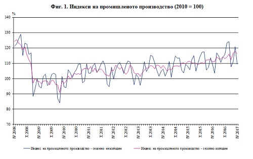 Фиг. 1. Индекси на промишленото производство (2010 = 100)