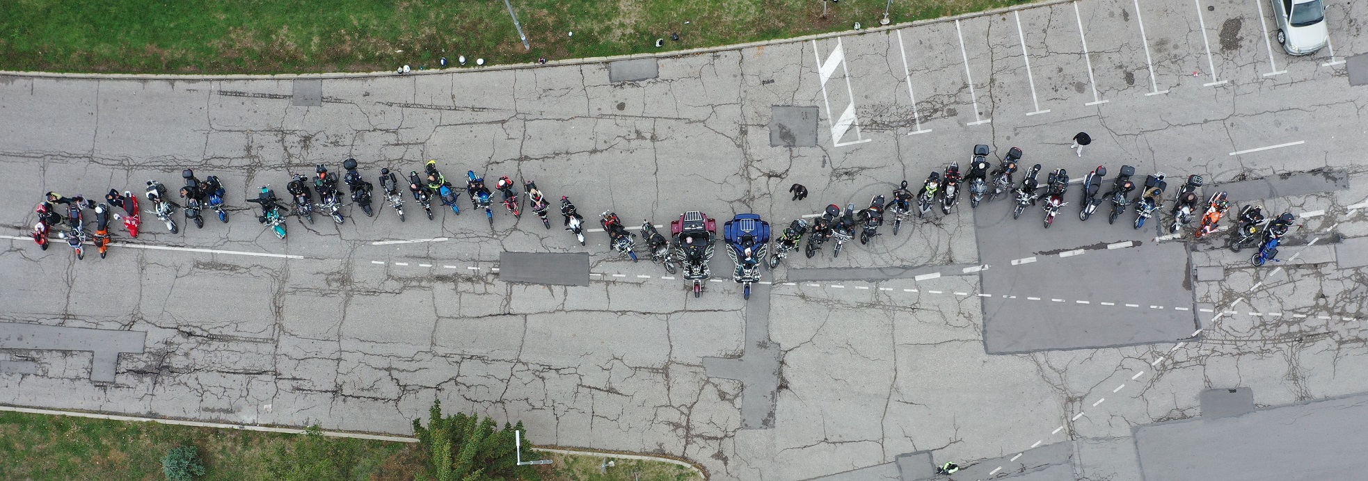 В центъра на фигурата застанаха две уникални триколки. Като знак на подкрепа рокерите бяха вързали на лицата си черни бандани с бял мустак.
