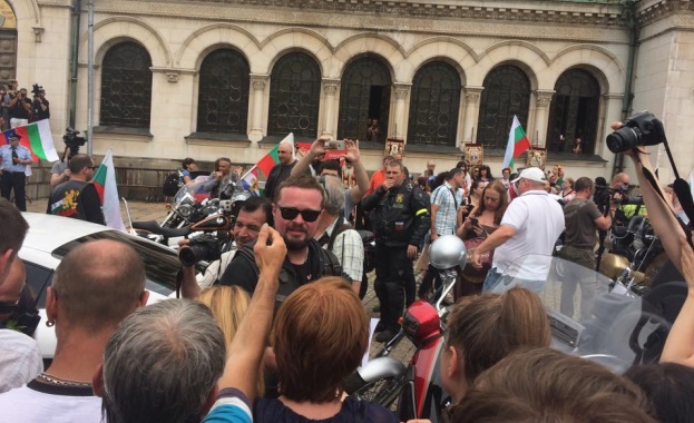 /КРОСС/Русофили и русофоби посрещнаха "Вълците на Путин" пред храм-паметника „Александър Невски".