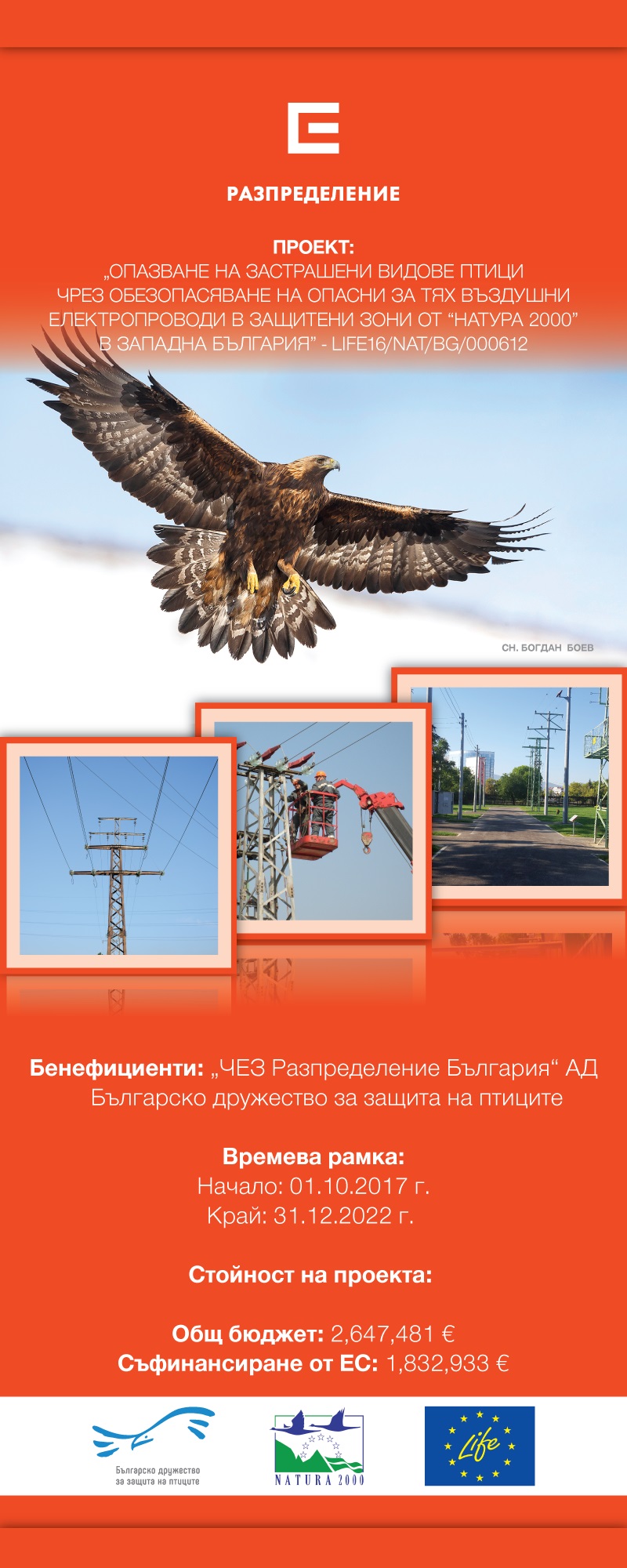 Проектът „Опазване на застрашени видове птици чрез обезопасяване на опасни за тях въздушни електропроводи в защитени зони от Натура 2000 в Западна България", LIFE16/NAT/BG/000612 е с бюджет 2,65 млн. евро. Изпълнението му е в продължение на дългогодишните традиции на ЧЕЗ Разпределение по извършване на дейности за защита на птиците. От стъпването на електроразпределителната компания на българския пазар, дружеството е обезопасило 620 гнезда чрез монтиране на платформи, специално конструирани на предпазват птиците от токов удар, както и 520 стълба. До момента инвестициите на ЧЕЗ Разпределение до момента за защита на биологичното разнообразие, възлизат на над 100 хил. лв.