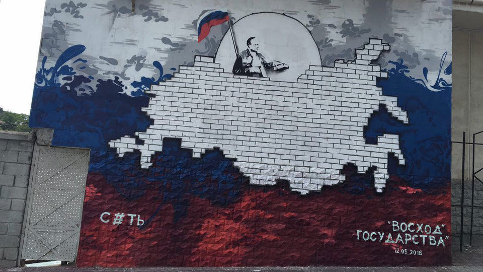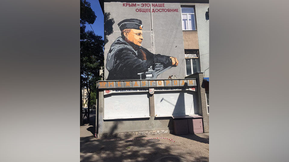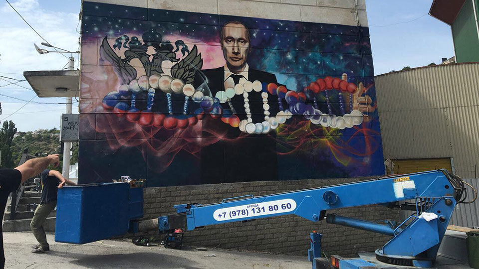 Първите графити се появяват още през 2014 г., когато полуостровът се върна в състава на Русия. С времето броят на уличните произведения на изкуството се увеличава. На едно от последните от тях, наречено Изгрев на държавата, руският лидер е представен като строител.