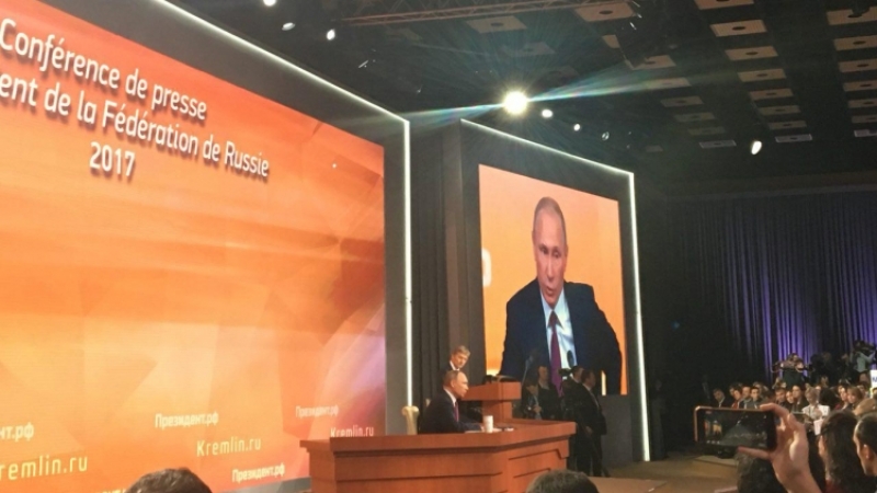 /КРОСС/ В 11:00 часа московско време стартира традиционната пресконференция на Владимир Путин, която бе открита от говорителя на Кремъл - Дмитрий Песков.