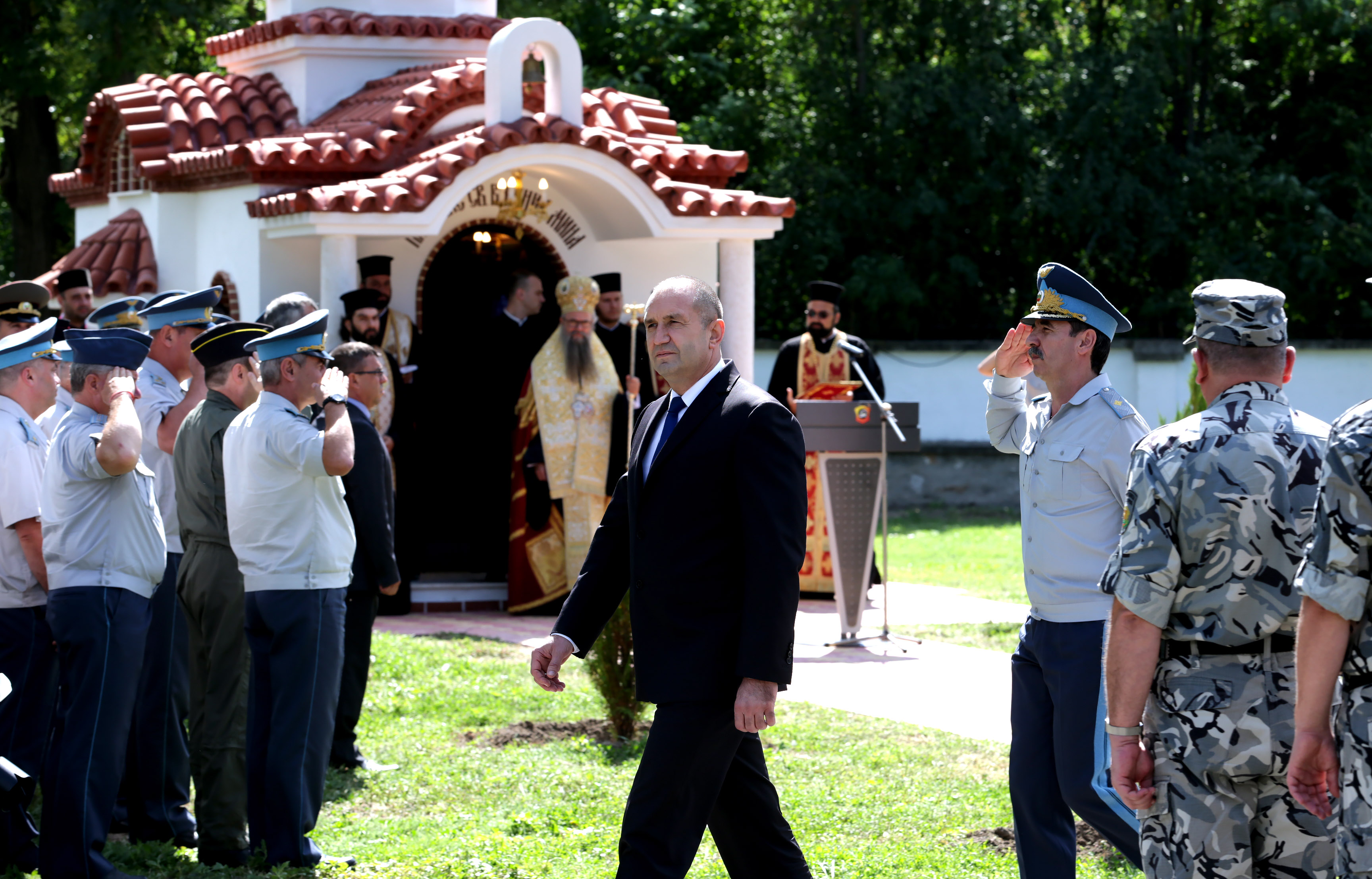 /КРОСС/ „Днес е ден на вярата, която ни завещаха нашите ветерани и учители от поколенията, които градяха реактивната авиация и щурмуваха звуковата бариера, на героите, които прославиха България по времето на Балканската война, и тези, които яростно бранеха небето над София. Това заяви президентът и Върховен главнокомандващ на Въоръжените сили Румен Радев в авиобаза „Граф Игнатиево“ по време на откриването и освещаването на параклис „Св. Вмчк. Мина“.
