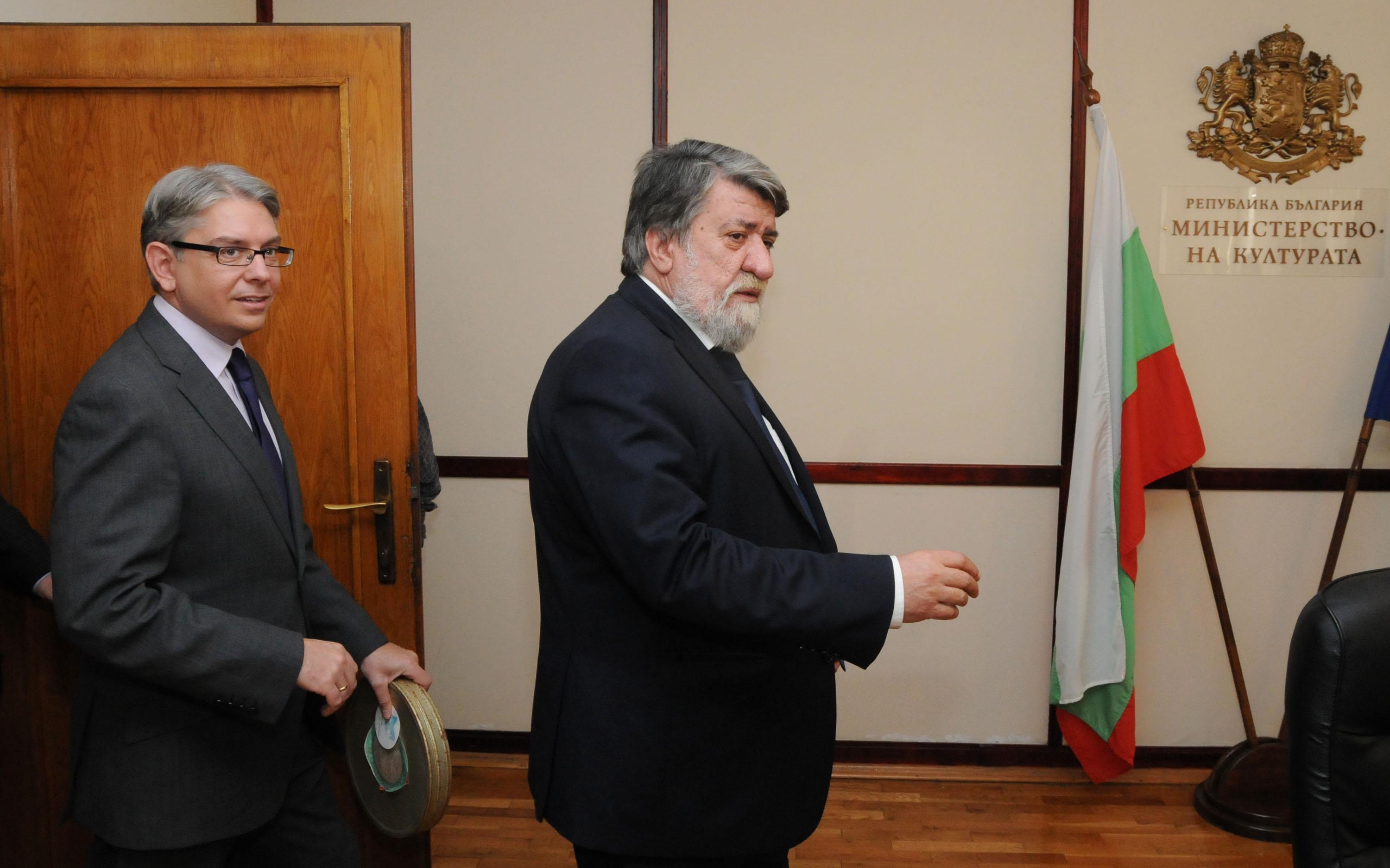София /КРОСС/ Служебният министър на културата Мартин Иванов подари на новия министър Вежди Рашидов филма „Мъжки времена" в ръждясала кутия. Вежди Рашидов отказа да получи подобен подарък, като заяви, че това е символ на несвършената работа в последните близо две години от кабинета "Орешарски".