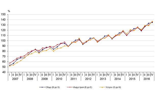 Индекс за разходите на работодателите за труд през четвъртото тримесечие на 2016 година