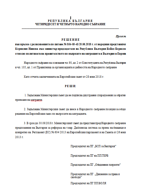 „Вместо да възложим на Министерски съвет да приеме решение срещу обратно връщане на мигранти, направо задължихме правителството да не подписва двустранни споразумения, както и да внесе в НС позиция за общо решение на ЕС.