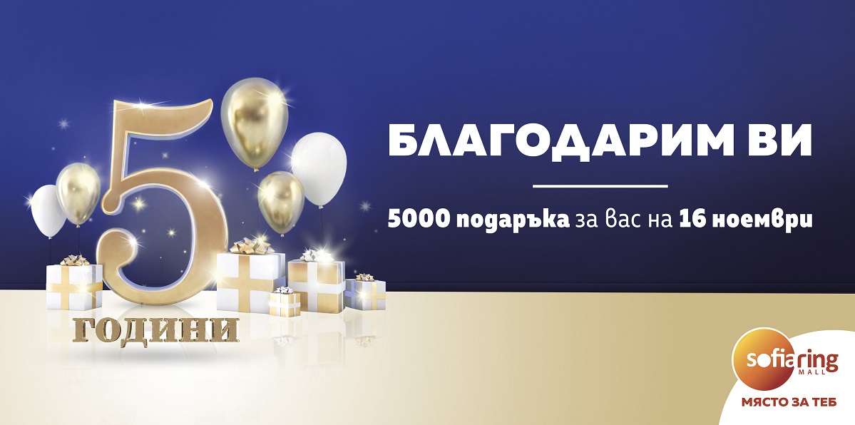 5000 страхотни подаръка ще получат най-големите фенове на Sofia Ring Mall, който този месец навършва 5 години. Голямото празнуване предстои на 16 ноември, събота, когато търговският център в полите на Витоша е подготвил безброй приятни изненади за своите гости.