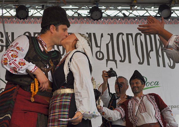 Дъждовното време не изплаши нито младоженците, нито сватбарите от възстановката на тракийска сватба. Преди да се венчаят по старите обичаи, 38-годишният банков служител Росен Митев и 28-годишната Стойка Димитрова, която работи като юрисконсулт, сключиха граждански брак пред на сцената на поляната в местността „Пчелина". Множество от 3009 сватбари извика „Горчиво", преди от гората да излязат хайдути от клубовете „Традиция". Булката и младоженеца също са част от подобен клуб в родния си град, разказват, че решението да се оженят по този начин са взели заедно и единодушно.