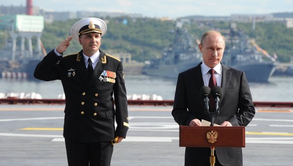 Върховният главнокомандващ ВС на Руската федерация Владимир Путин поздрави руските моряци и офицери с Деня на военноморския флот в северното пристанище Североморск край Мурманск. Путин прие парада на борда на тежкия авионосещ крайцер „Адмирал от флота на Съветския съюз Кузнецов”. В приветствието си той постави акцент на това, че денят на ВМФ е празник за цяла Русия, защото „военноморският флот за нашата страна – това е нейната гордост, мощ и достойнство”.