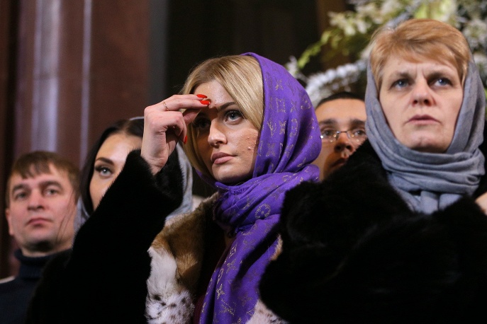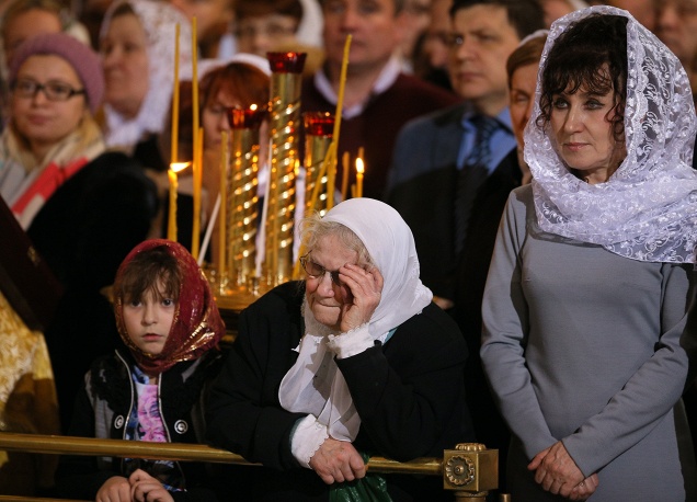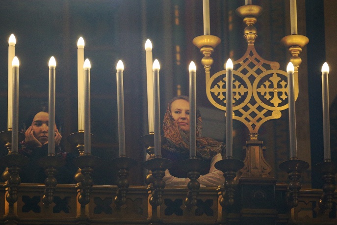 Най-големият катедрален храм на Русия – църквата „Христос Спасител”, в която могат да се поберат десет хиляди души, дълго преди началото на тържественото богослужение беше пълна с вярващи. Духовенството, облечено в бели и златни одежди – традиционните цветове на Коледа, миризмата на елха, тържествените песнопения. Сияещите очи на вярващите допълваха радостната атмосфера на богослужението. Не само жителите на Москва посрещнаха там Коледа, но в столицата пристигнаха и хора от различни руски градове, както и от чужбина.