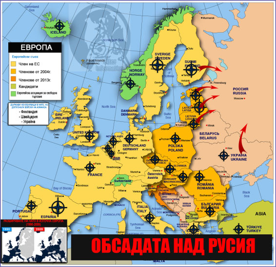 Външния министър на Русия припомни договореностите между страната и НАТО след разпада на СССР и съгласието на Горбачов Германия да се обедини и да се присъедини към алианса, според които НАТО не трябва да се разширява повече на Изток. Въпреки това към днешна дата почти във всички съседни държави на Русия има войски на алианса или членуват в него (виж картата по-долу - бел.ред.). В Украйна, която се готви да се присъедини също към НАТО вече действат смесени войски на НАТО с главен щаб в Полша, в които участват военни от Украйна, Полша и Латвия.