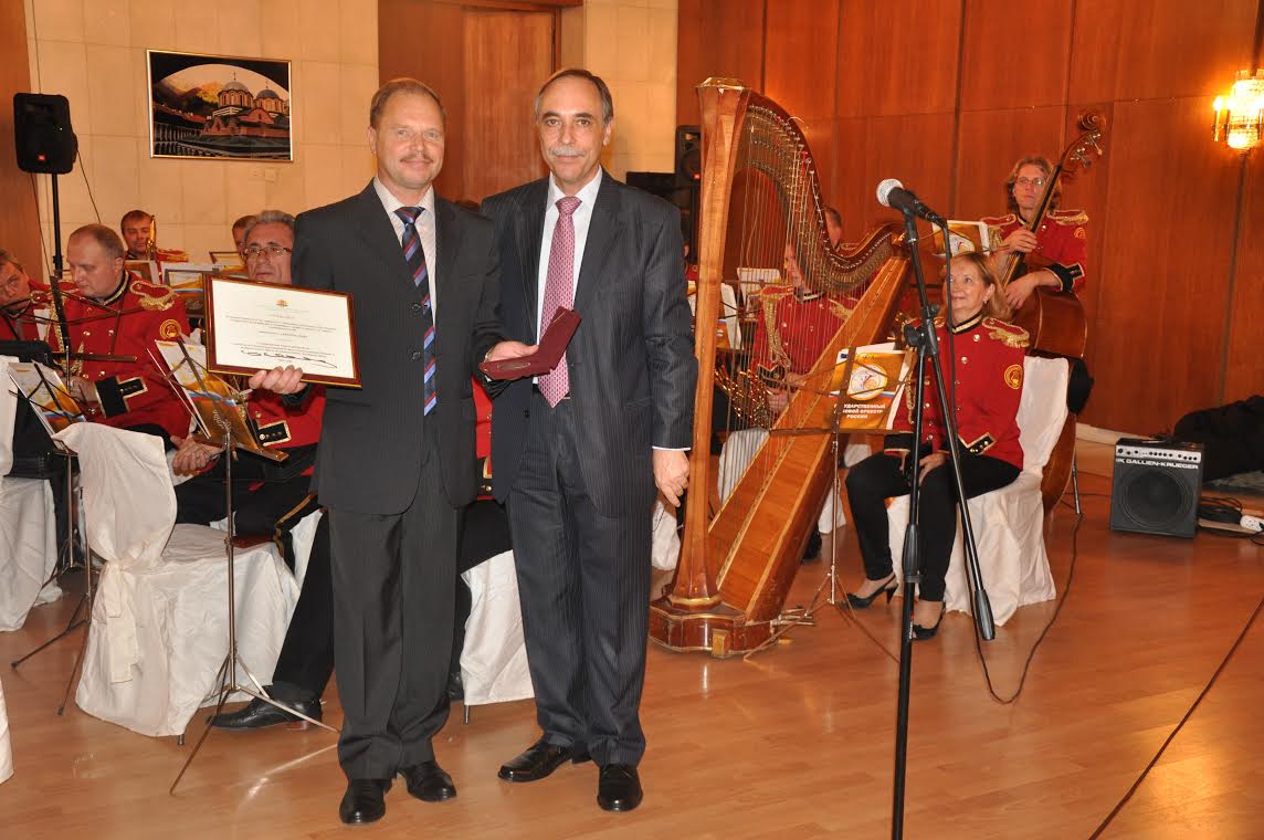 В знак на благодарност българският посланик Бойко Коцев връчи почетния медал "Самарско знаме" на художествения ръководител на Държавния духов оркестър на Русия професор Владимир Чугреев.