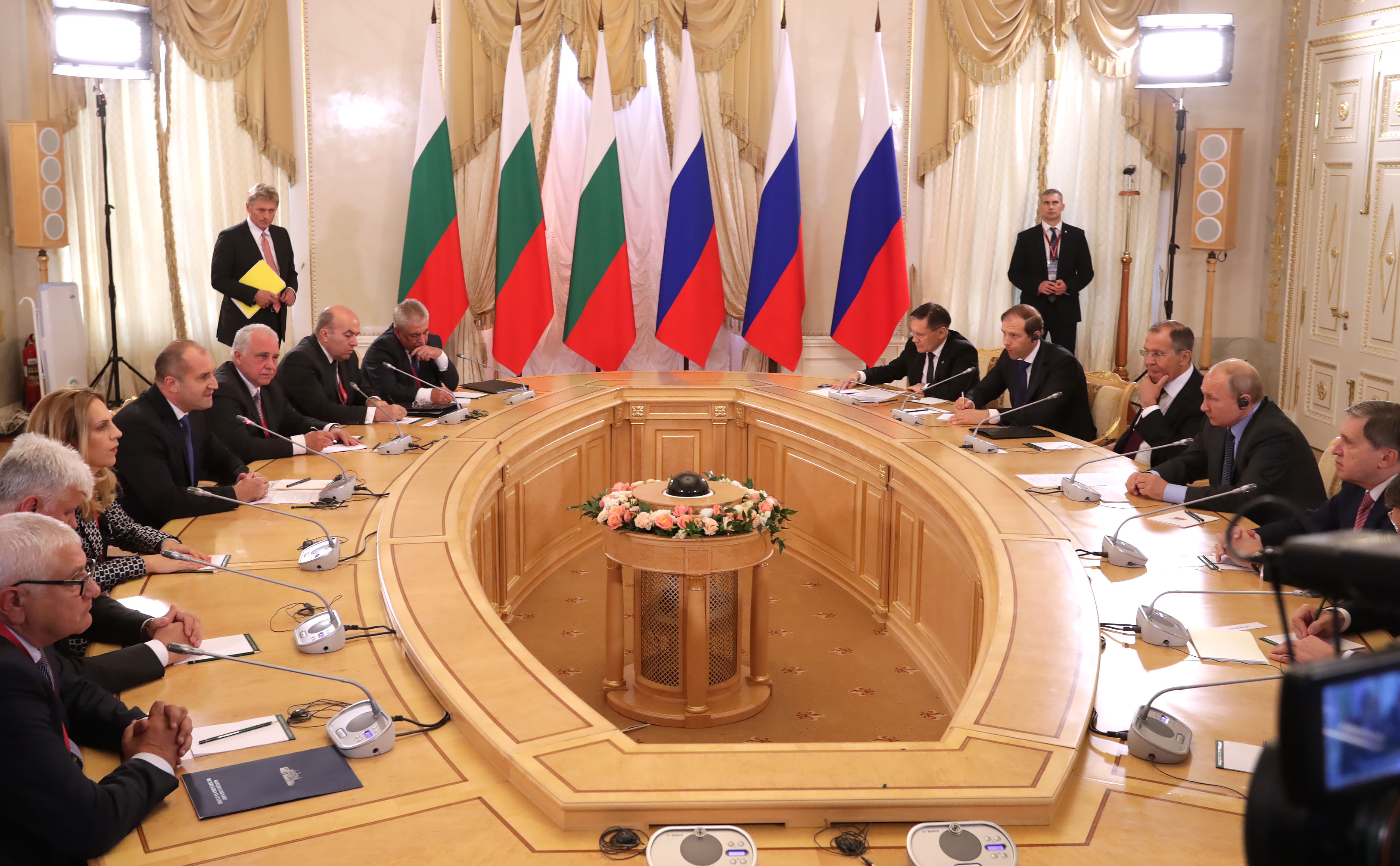/КРОСС/ Президентът Румен Радев разговаря днес с руския си колега Владимир Путин в Константиновския дворец в Санкт Петербург. Българският държавен глава е в Русия за участие в Петербургския международен икономически форум, където разговаря и с шефа на "Газпром" Алексей Милер. В българската делегация участва и вицепремиерът Марияна Николова. В рамките на форума Радев ще разговаря още с генералния секретар на ООН Антониу Гутериш и с министър-председателя на Армения - Никол Пашинян."България е член на ЕС и НАТО, но това не изключва развитието на интензивни отношения с Руската федерация. Нашата втора среща за такъв кратък период е ясен сигнал за новата динамика в двустранните отношения, които се базират на дълбоки исторически, културни и духовни връзки, посочи Радев и допълни, че това е сигнал, че двете страни желаят да развият тези отношения интензивно и конструктивно на взаимноизгодна основа", заяви Радев в началото на срещата, предаде БТА.