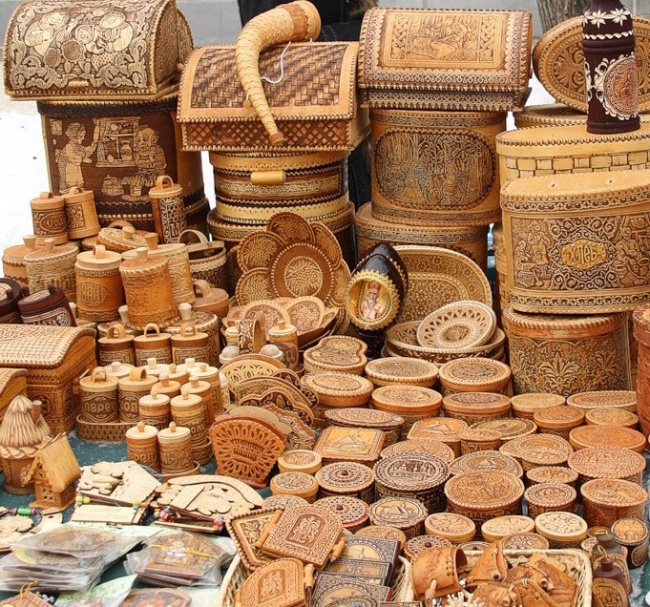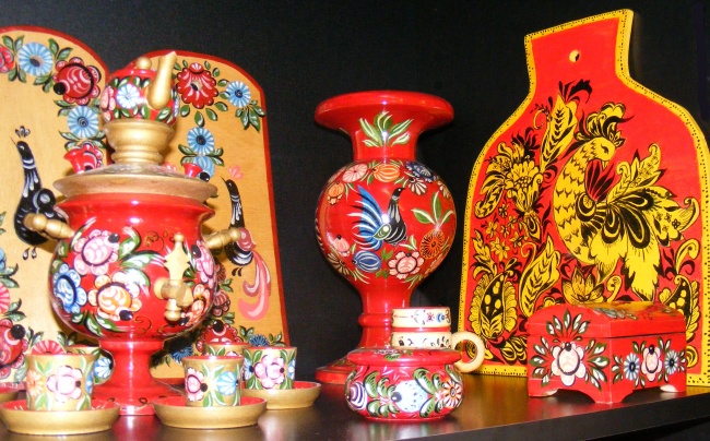 Можете да се насладите на сложно преплетените форми от ярко-червени плодове и златни листа на черен фон. Даже традиционните дървени лъжици, подарени и по най-незначителния повод, оставят приятен и дълъг спомен.
