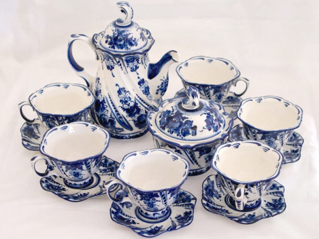 Гжел е град в Московска област, известен с добива на глина още от средата на 17 в. През 19 в. гжелските майстори започнали да произвеждат керамика и порцелан, като и до ден днешен с особен интерес се славят изделията, украсени в един цвят - синята гланцова боя се нанася с тънка четка за графично изрисуване на детайли.