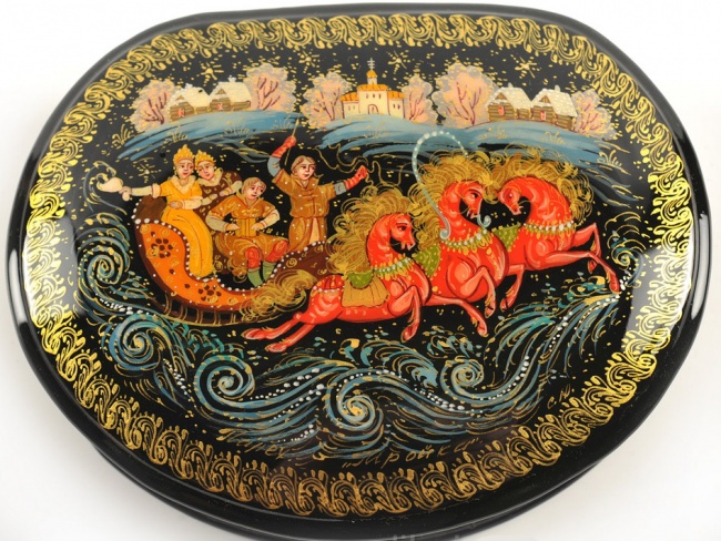 Палехската миниатюра е едно особено, тънко и поетично виждане за света, което е характерно за руските народни поверия и песни. За изрисуването на миниатюрата се използват кафяво-оранжеви и синьо-зелени тонове и бои.