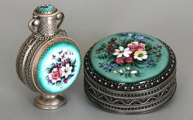 Майсторите изобразявали на бял емайл флорални елементи, птици и зверове с помощта на многоцветни бои и краски.