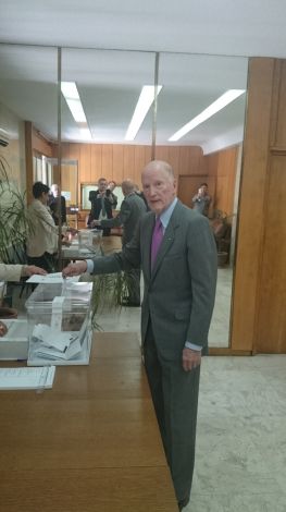/КРОСС/ Негово Величество Симеон Сакскобургготски, чийто престой в Испания се удължи с няколко дена, гласува тази сутрин в 10 ч. местно време в откритата в българското посолство в гр. Мадрид изборна секция. Негово Величество бе посрещнат от нашия посланик там Н.Пр.Костадин Коджабашев.