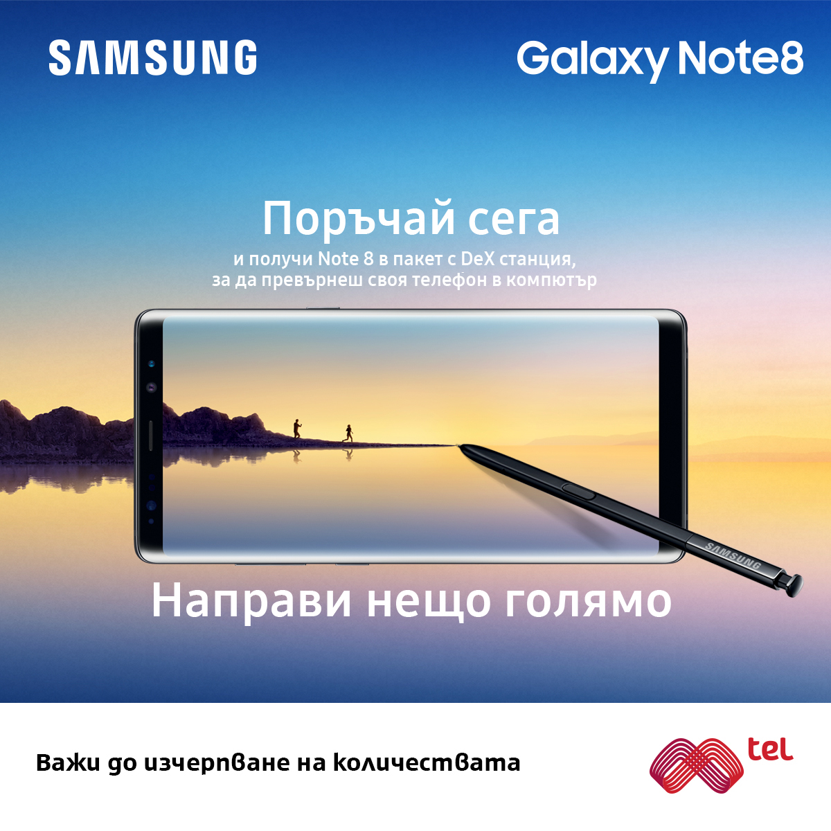 /КРОСС/ Мтел започва предварителна продажба на новия флагман Samsung Galaxy Note8. Клиентите могат да заявяват желаните устройства до 23:59 часа на 13 септември на сайта на телекома, като първите 100 ще получат устройството в комплект с работна станция Samsung DeX.